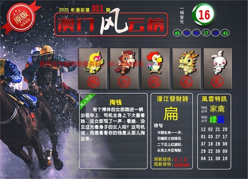 310期:六肖中特〖兔牛鸡鼠猪〗开:虎16准